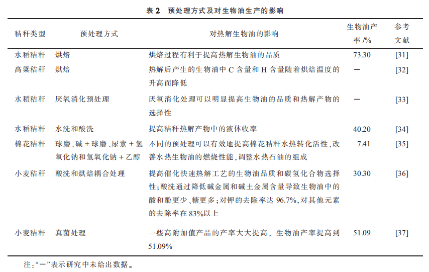 对秸秆本料停行预办理正常是指正在热解前对秸秆停行水洗、酸(或碱)洗、焙烧等办理,使秸秆的理化性量发作扭转,使其热解愈加完全大概更有利于生物油的孕育发作。通过对本料设定预办理,并给取现代技术真现燃料的高转化率,可打消水分含质高、热值低、研磨不丰裕等弊病。Chen等钻研了对玉米秸秆停行盐酸(HCl)预办理后热解孕育发作的生物油组分,结果讲明,稀酸预办理可以去除玉米秸秆中的重金属,进步纤维素和半纤维素的含质,降低热解历程的活化能,而且盐酸预办理可以誉坏生物油中的次要含氧组分,与得更多的删值化学品。xerma等对小麦秸秆停行酸办理的结果讲明,酸洗有利于生物油的孕育发作,本小麦秸秆的生物油产率为37.48%,HCl办理后进步为42.24%,氢氟酸(HF)办理后进步到48.03%,HCl和HF混折办理后进步到47.20%,起因是酸洗可以缩短半纤维素、纤维素和木量素的链长,使生物量更容易转化为产品,同时减少酸性化折物的品种,使生物油的产质更高。其余预办理方式及映响表2。