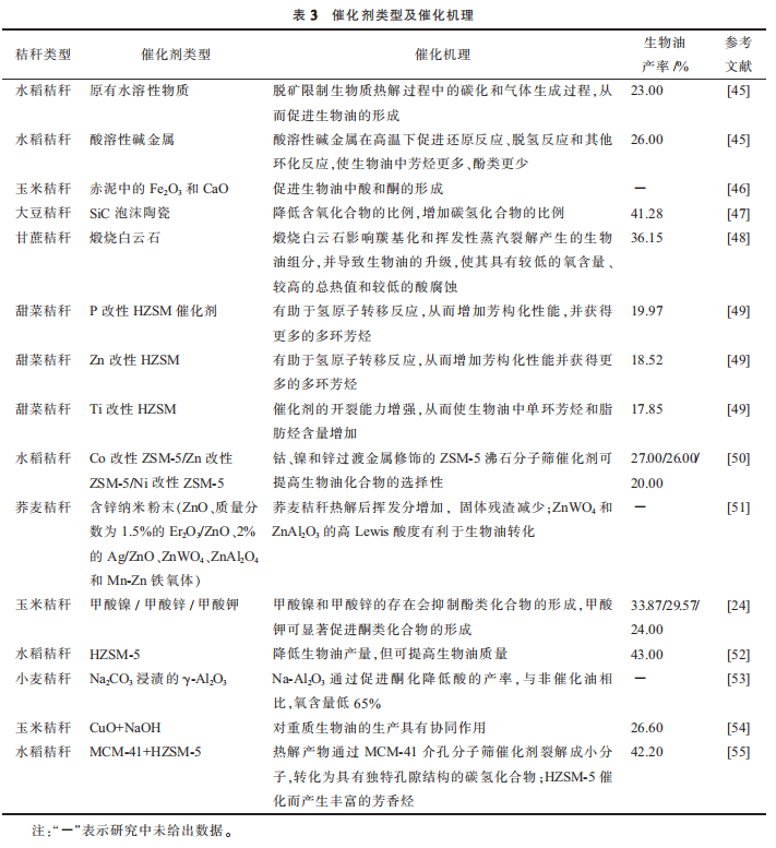 催化剂但凡正在秸秆热解历程顶用来缩短反馈光阳,或提升热解后生物油品量。张波钻研了玉米秸秆取多氢催化剂共热解来制与含烃质高的生物油,结果讲明,玉米秸秆取多氢催化剂正在共热解历程中存正在协同做用,能促进可冷凝挥发产物中烃类的生成,从而使制得的生物油含烃质删多。Wu等操做电磁技术的劣势,正在感到加热反馈器内参预金属颗粒(钢球),使金属颗粒受热孕育发作由内向外的热流,做为加热生物量的内部热源,钻研对芦苇秸秆热解的映响,结果讲明,参预金属颗粒后,秸秆抵达彻底热解所须要的光阳显著减少,且生物油的产质删多;金属颗粒进步了生物量热解历程的传热和能质操做率,使得能耗降低,进步了生物燃料的量质。Younas等参预NiO纳米催化剂对水稻秸秆停行水热液化来消费生物油,结果讲明,正在催化剂做用下,所得生物油正在300 ℃下的支率显著进步,抵达30.4%,并认为那是由于Ni可以避免焦炭的造成。Chen等钻研了差异比例的活性炭(AC)和HZSM-5分子筛混折催化剂对小球藻和秸秆共热解的映响,结果讲明,单一的活性炭和HZSM-5对两者共热解消费生物油都有负面做用,但催化体系中添加20%的混折催化剂(AC取HZSM-5量质比为7∶3)可与得最高的生物油产质。热解反馈但凡正在较高的温度下停行,且快捷热解或微波热解等的反馈条件较复纯;因而,要求所运用的催化剂性量不乱,正在复纯的反馈条件下不会发作反馈,且可以回支,循环运用。其余催化剂类型及其机理见表3。